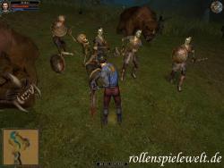 geschossen. Die ersten Pfeile sitzen, der erste Gegner geht zu